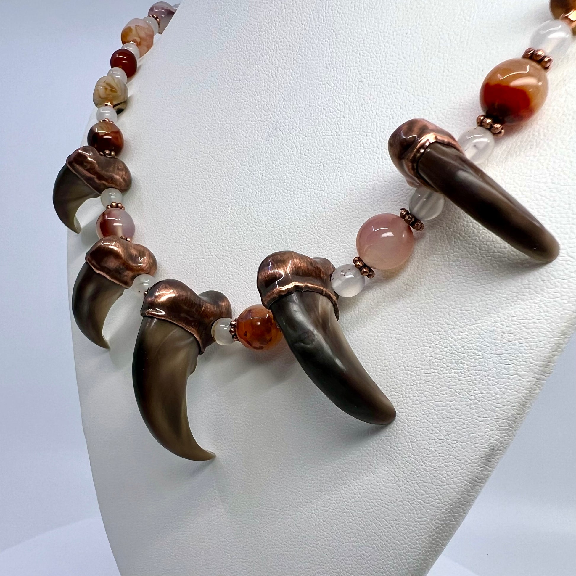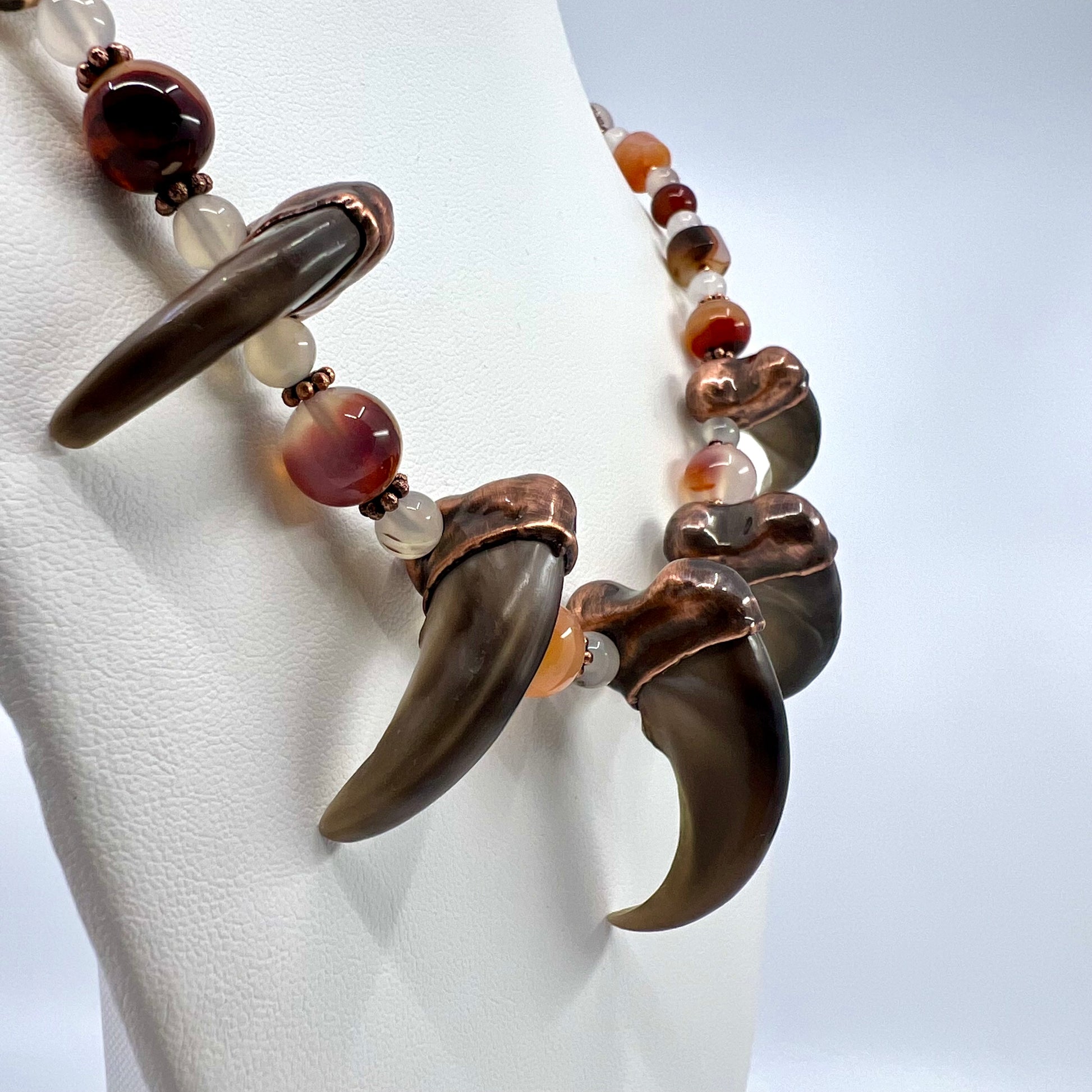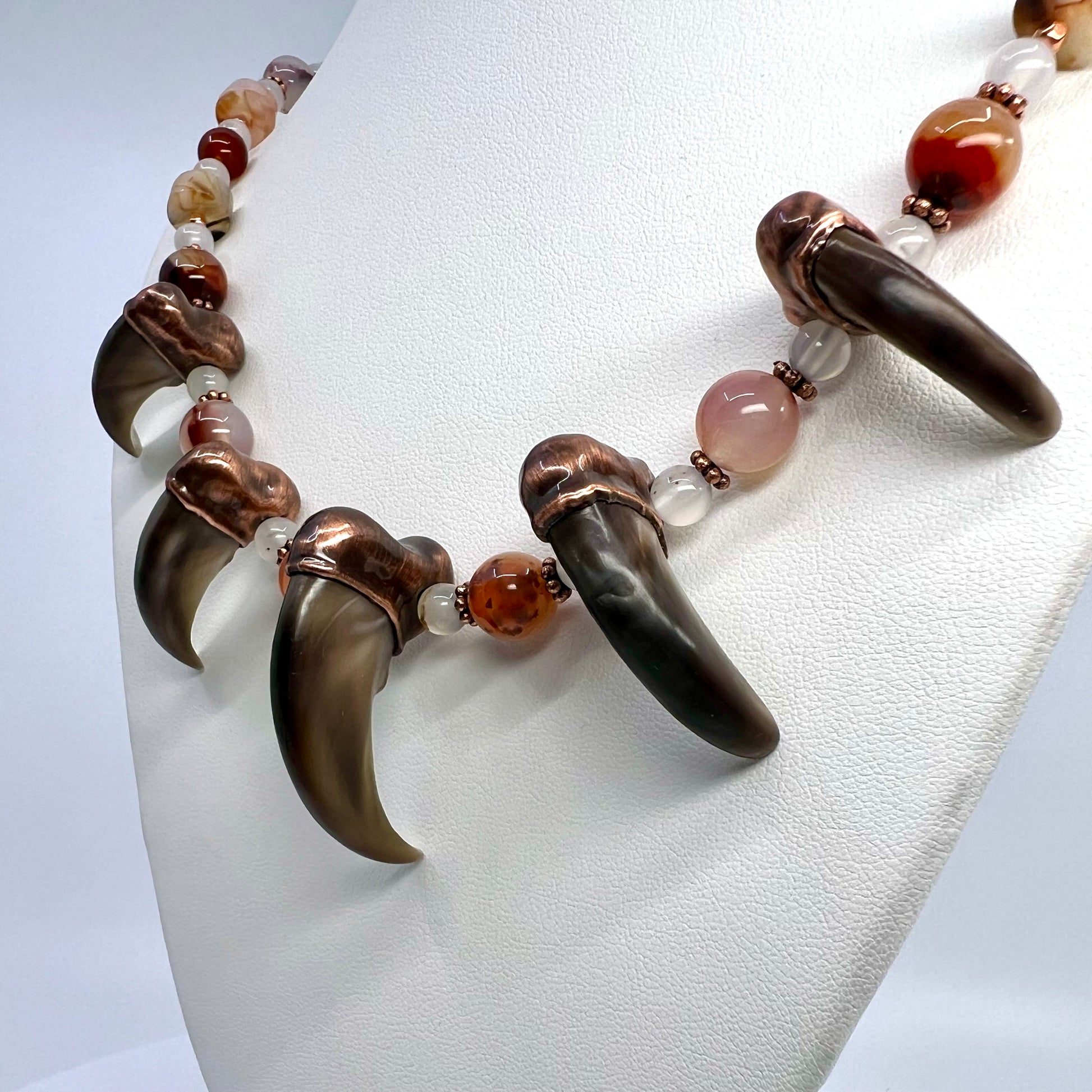 5 Bear Claw Beaded Necklace - Copper Electroformed