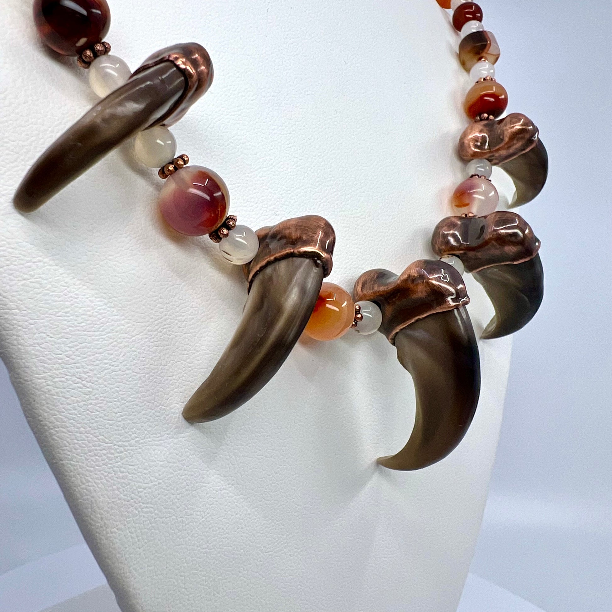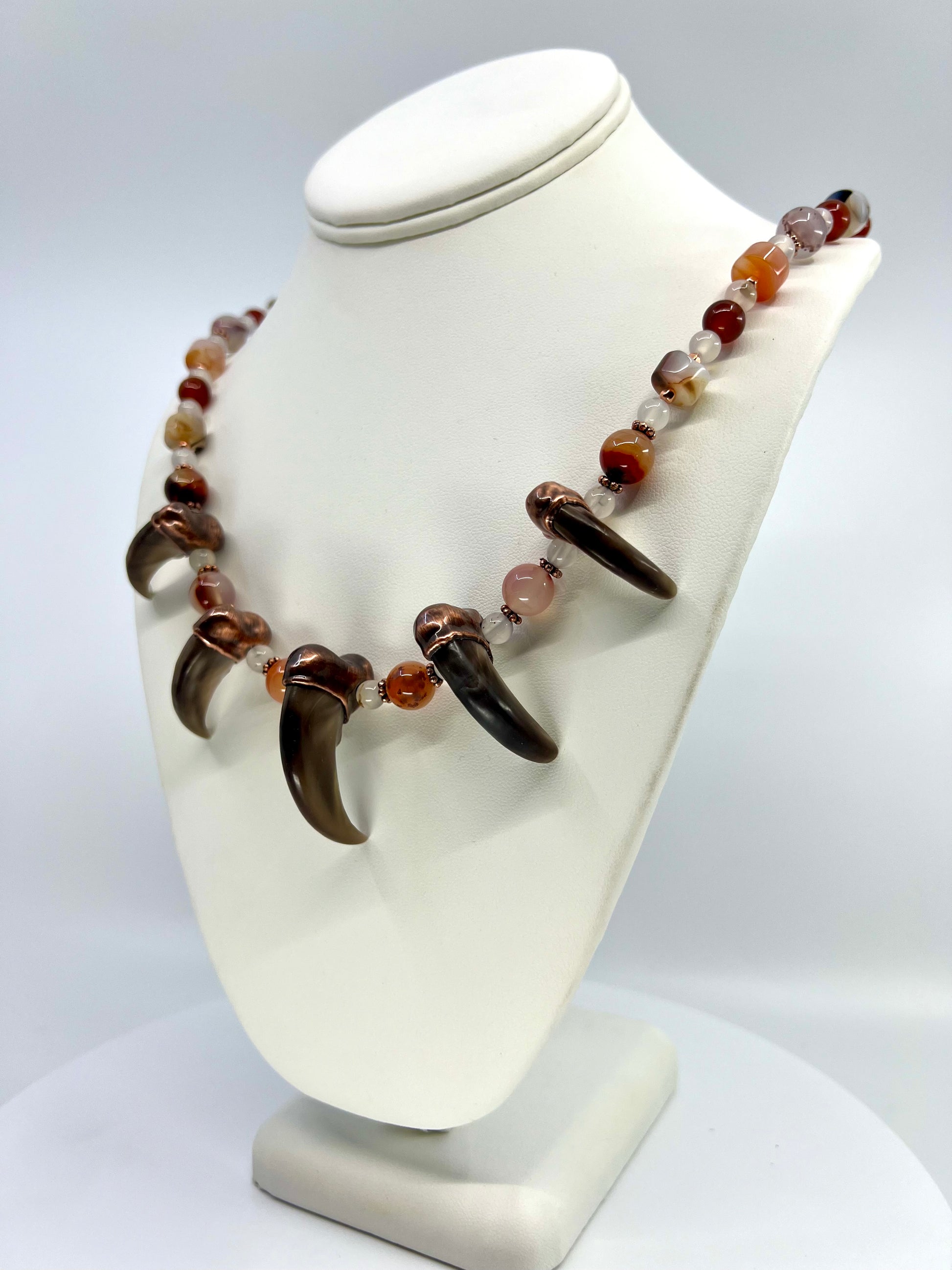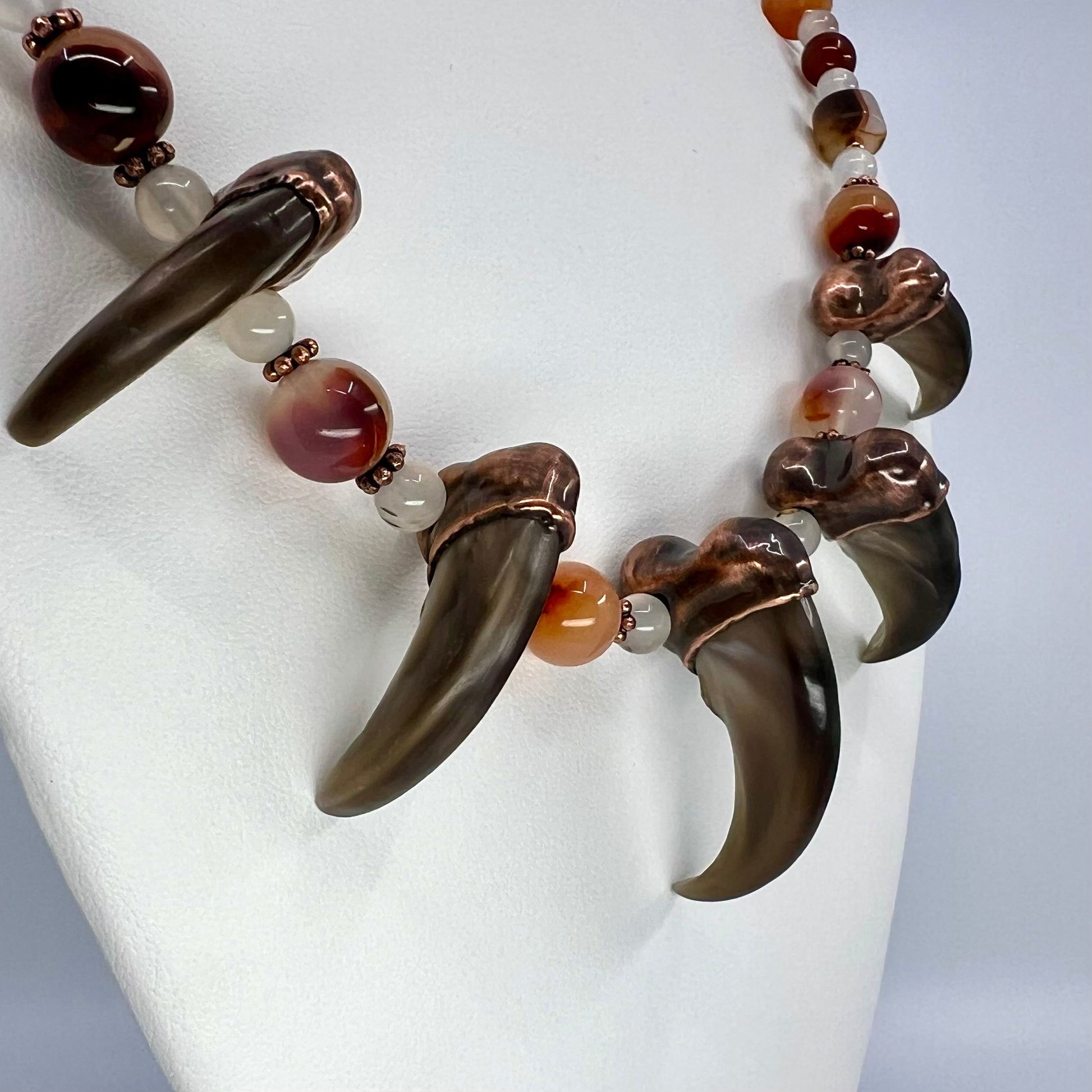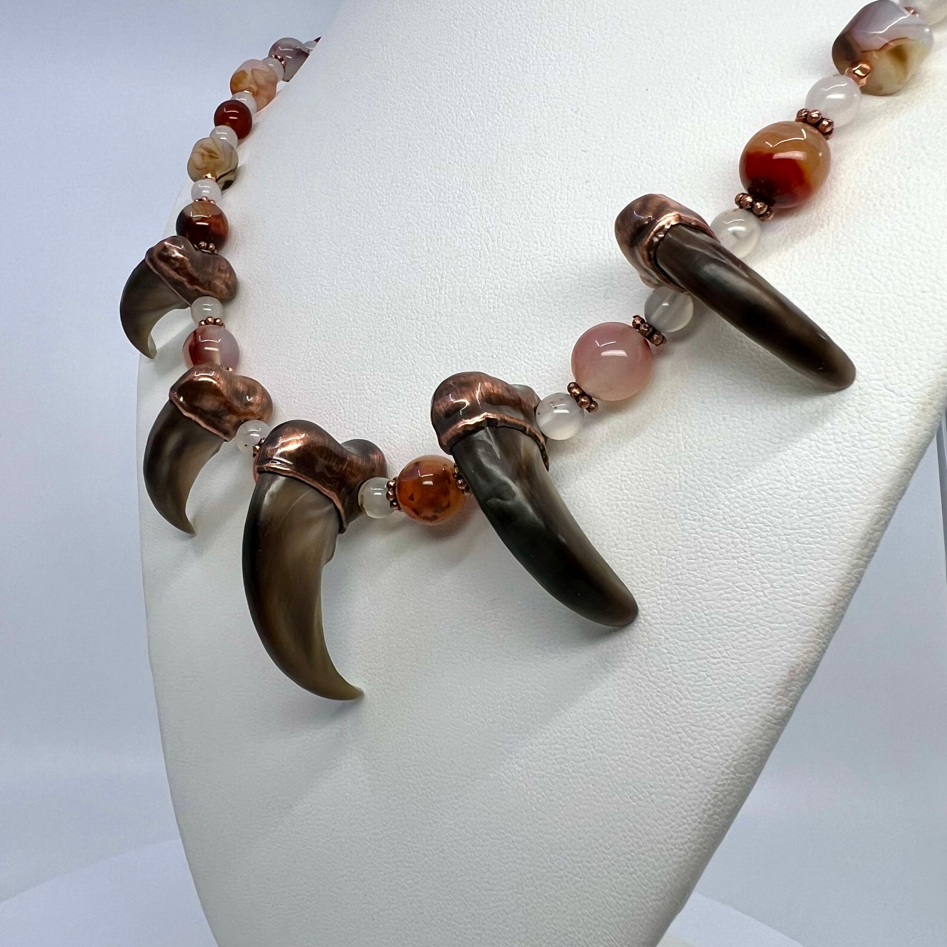 5 Bear Claw Beaded Necklace - Copper Electroformed