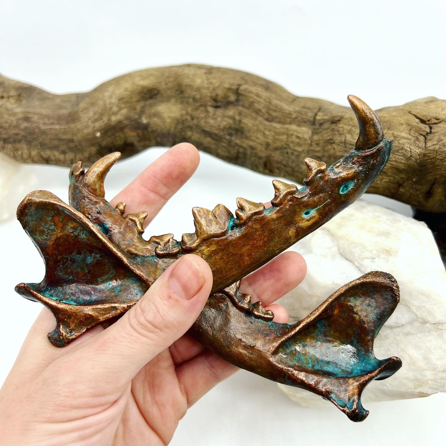 Each mandible is approximately 5 1/2" long, 2" tall, 1/4" wide.