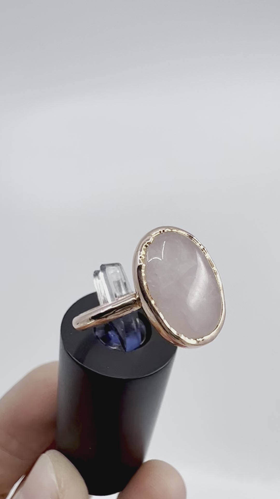 Size 8 Rose Quartz Ring - Copper Electroformed